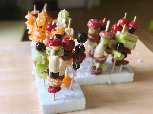 可以用不同水果组合出渐变色串,比如草莓+橙子+山楂;