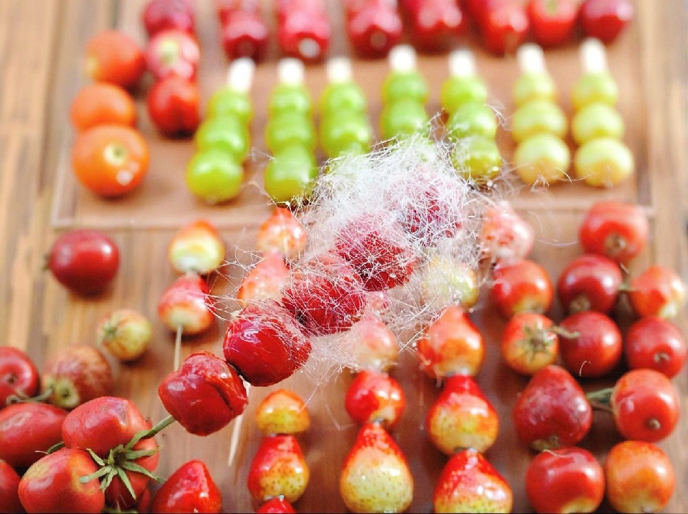 穿水果 → 熬糖 → 裹糖 → 放着降温 → 没地方摆 → 糖冷却太慢 → 再复溶 → 水果开裂 → 坏掉 → 又要重新裹